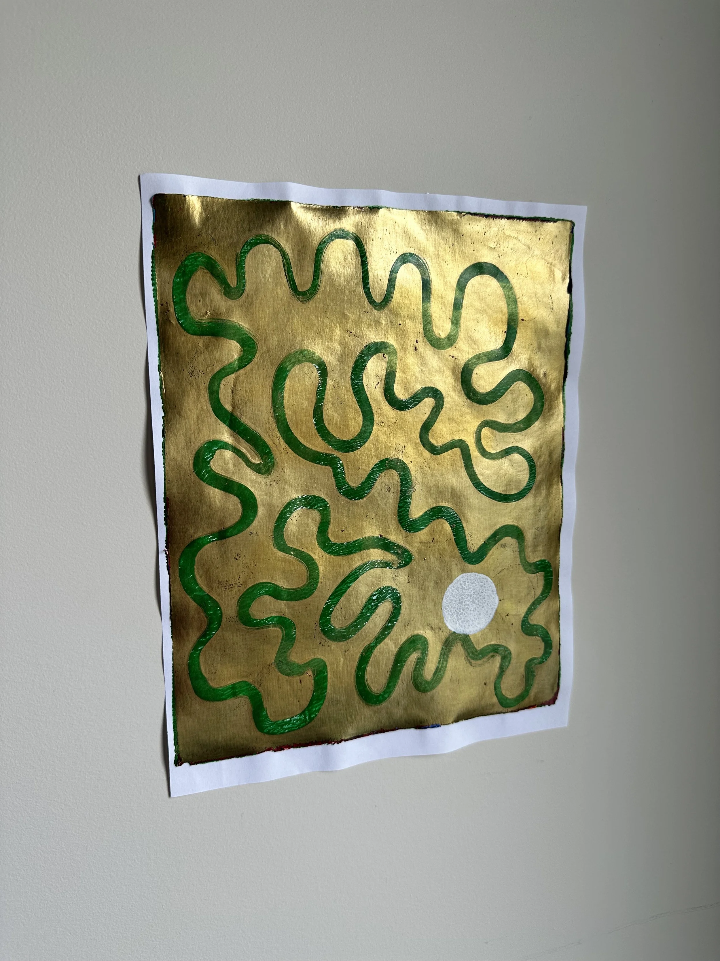 “Path to Prosperity” (2025), monoprint, acrylic paint, 8.5 x 11 inches