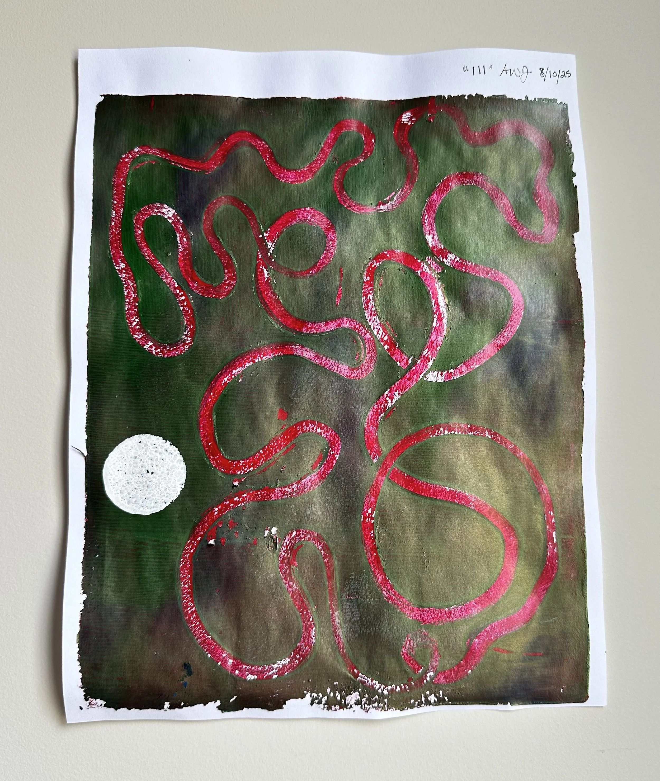 “111” (2025), monoprint, acrylic paint, 8.5 x 11 inches